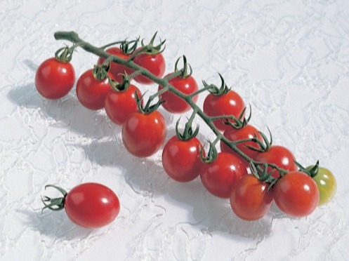 Apero is a hybrid, mini plum shaped tomato variety. Producing a pale green collar which fades when ripening, Apero produces masses of uniform, bright red, fleshy and tasty fruit.